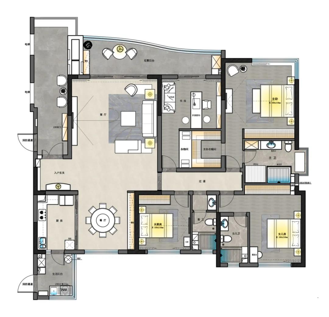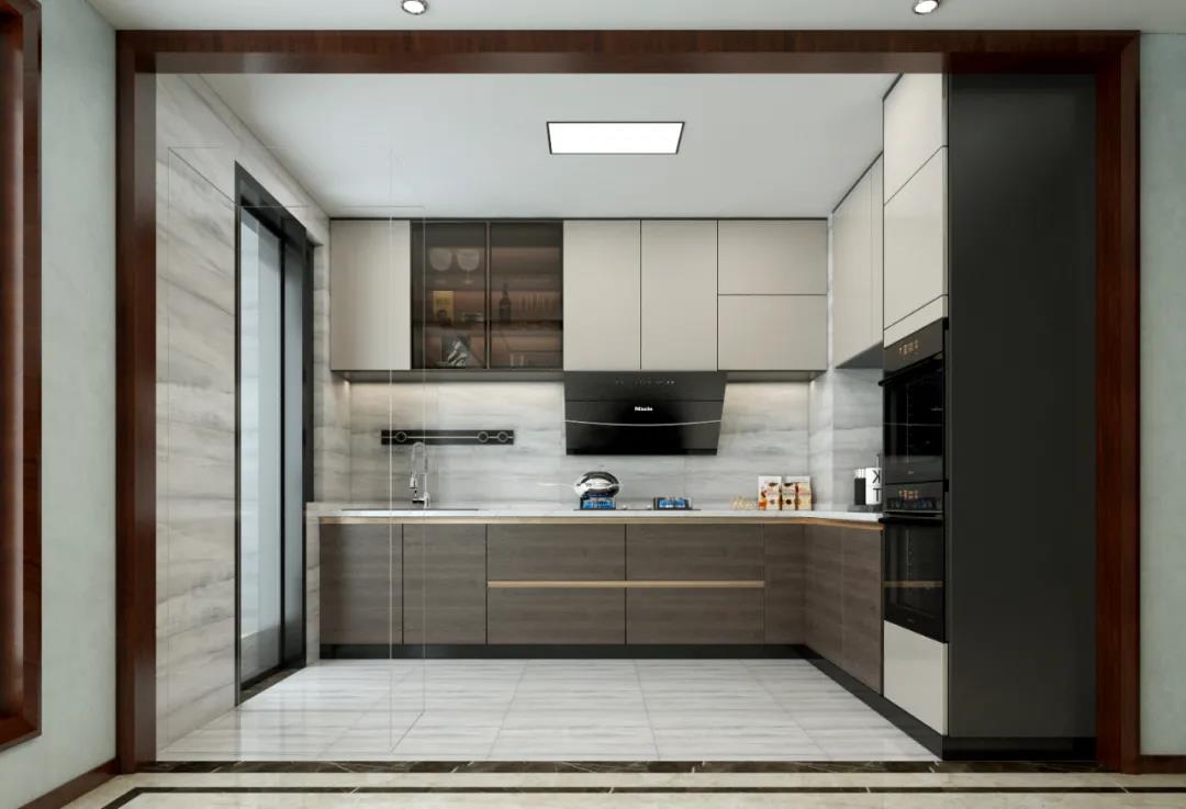 廚房操作臺(tái)做L型設(shè)計(jì),動(dòng)線流暢,寬敞便捷。生活陽臺(tái)與之連通,相對(duì)擴(kuò)寬廚房的適用范圍。家電配備齊全,烘焙、烤制都不在話下。