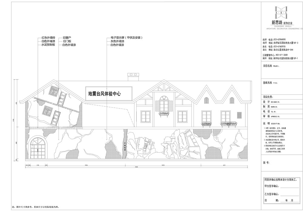 設計施工項目:仙女山旅游景區(qū)(地震體驗中心) 設計立面圖 設計效果圖