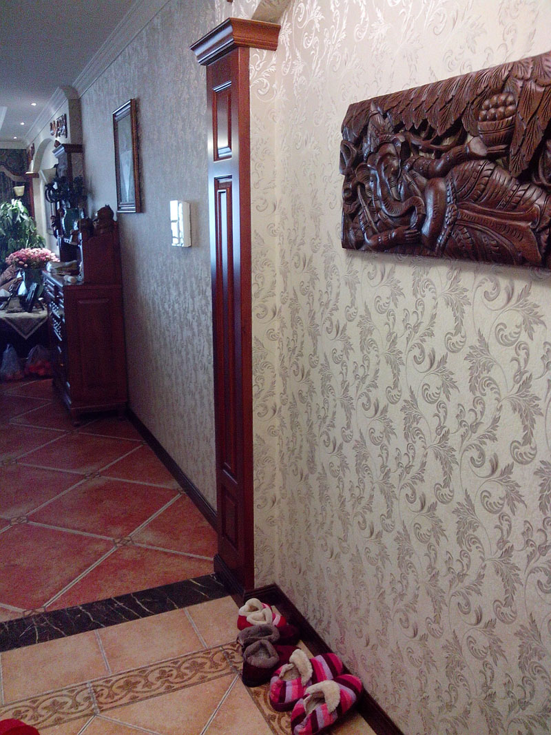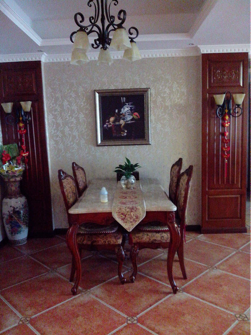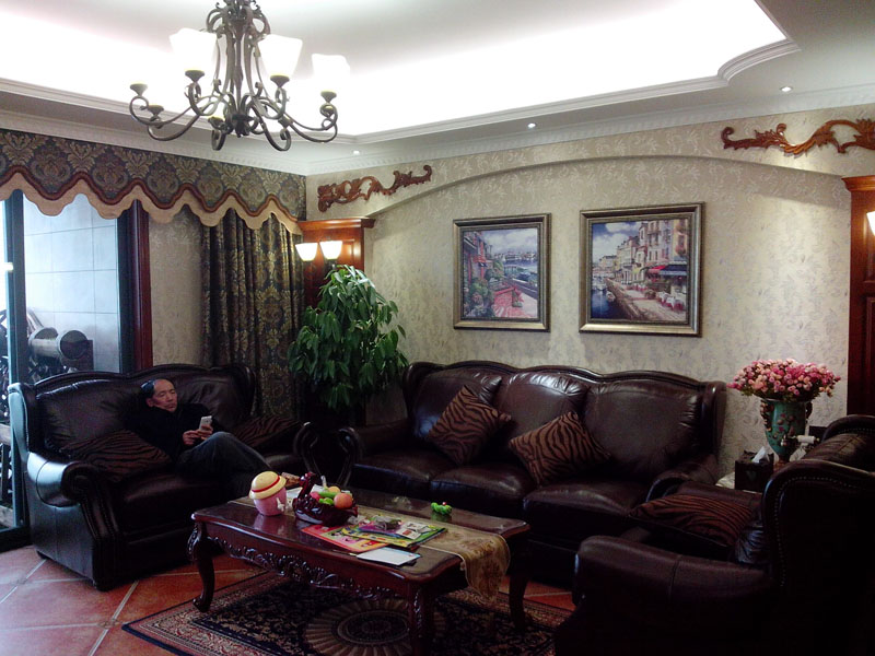 【基本情況】:業(yè)主一家五口人三代同堂,業(yè)主和她父親都是美院畢業(yè)的,所以在設(shè)計(jì)風(fēng)格上有自己獨(dú)特的見解想法。木質(zhì)紋理裝飾、地面仿古磚,營(yíng)造出美式的可以在不同角度產(chǎn)生不同質(zhì)感。同時(shí)也反映在裝修上對(duì)各種仿古墻地磚、墻紙的偏愛和各種仿舊工藝的追求。多以布面墻體為主、皮質(zhì)家具。