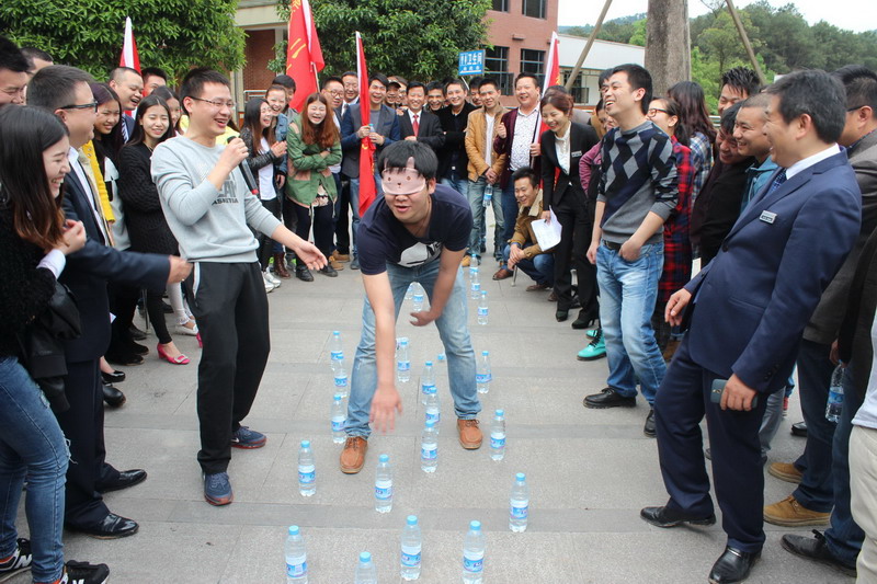 活動中,大家不分年齡大小、不論職位高低,全身心投入,體驗團隊活力,感受彼此友情,改善交際關(guān)系,融洽團隊合作精神。在“歌詞大接龍”游戲中,大家巧用團隊智慧,為了爭奪“麥王”頭銜而使出渾身解數(shù)。在隨后的“穿越地雷陣”、“團隊踢毽子”、“皮球大作戰(zhàn)”等游戲中,所有隊員在各自隊長的帶領(lǐng)下,相互信任、通力協(xié)作,充分發(fā)揮團隊合作的力量,為了最后的勝利而全力以赴。經(jīng)過3個小時的激烈比拼,第2隊“神鋒隊”隊?wèi){借出色的團隊協(xié)作能力獲得了最后的冠軍,每個隊員也都獲得了很有紀(jì)念意義的獎品,整個拓展活動圓滿結(jié)束。