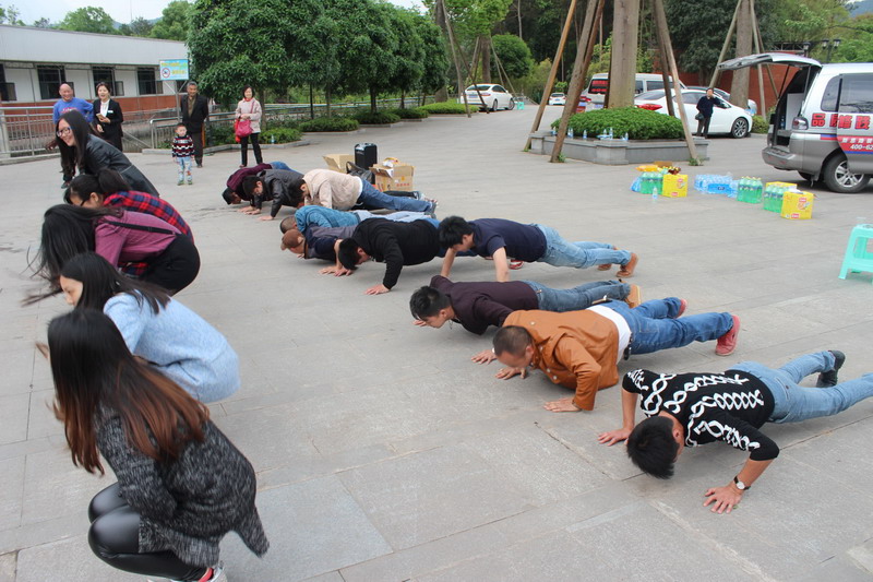 游戲結(jié)束后,落后的隊伍要接受小小的懲罰—做俯臥撐和下蹲