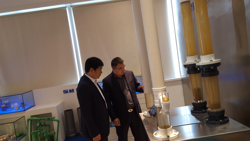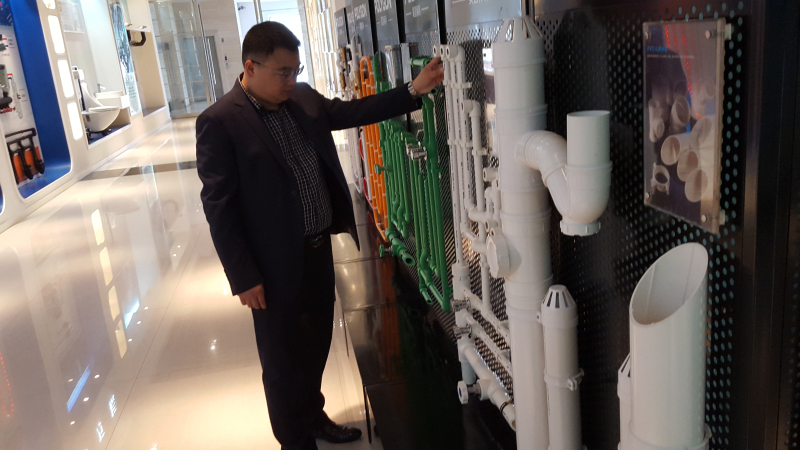 愛康企業(yè)負(fù)責(zé)人正在向李總詳細(xì)介紹同層排水管道