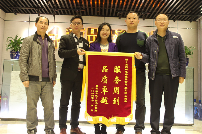 11月12日上午,美利山業(yè)主何老師及家人親臨南坪總部新思路裝飾為設計師敖元壩,工長唐科海送上一面印有:“服務周到,品質(zhì)卓越”的錦旗。這是對新思路裝飾品質(zhì)的認可,這也正是我們所秉承:客戶滿意是我們唯一的工作標準”的裝修理念。