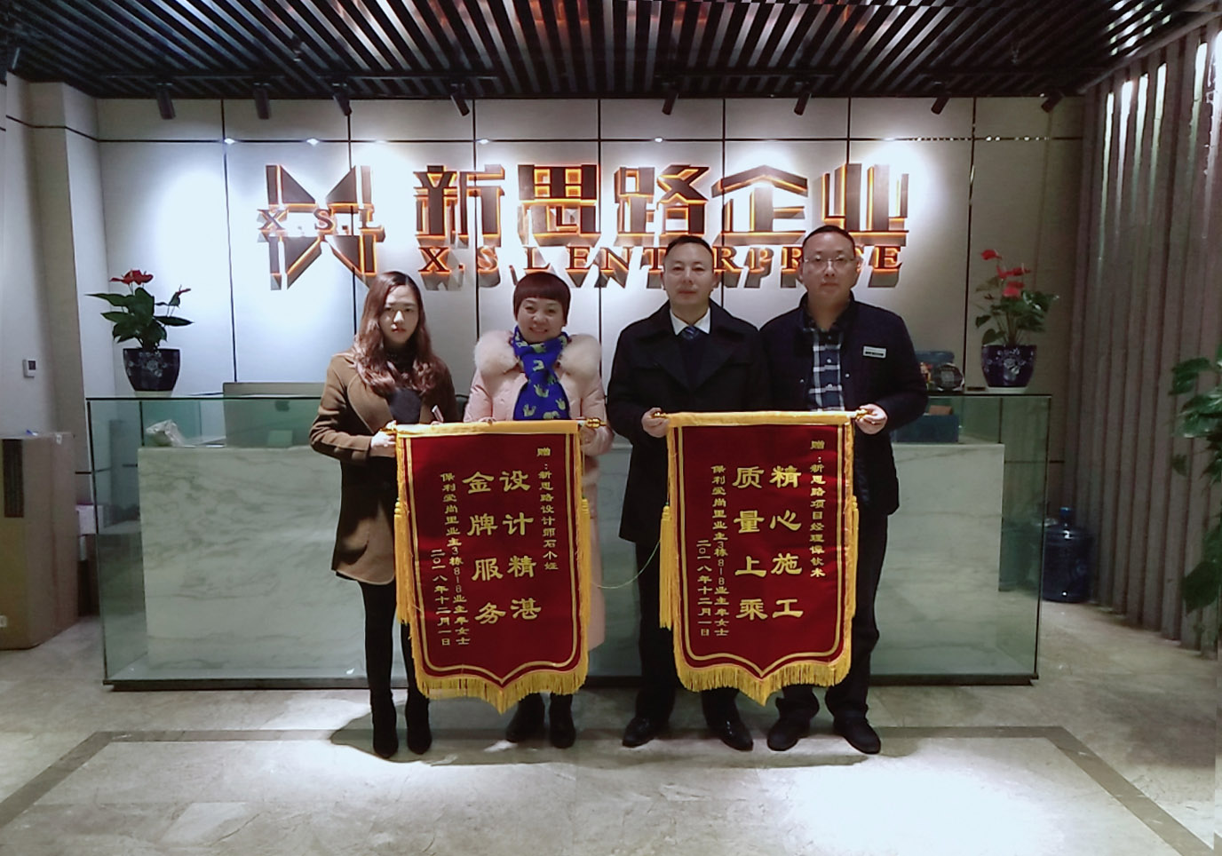 2018年12月7日下午,來自保利愛尚里的業(yè)主牟老師專程來到南坪總部將一面印有“設計精湛,金牌服務”的錦旗交給我們設計師石小婭手中,又將一面印有“精心施工,質量上乘”的錦旗交到我們項目經(jīng)理譚欽術手中,以感謝新思路裝飾高品質工藝和優(yōu)質貼心的服務。