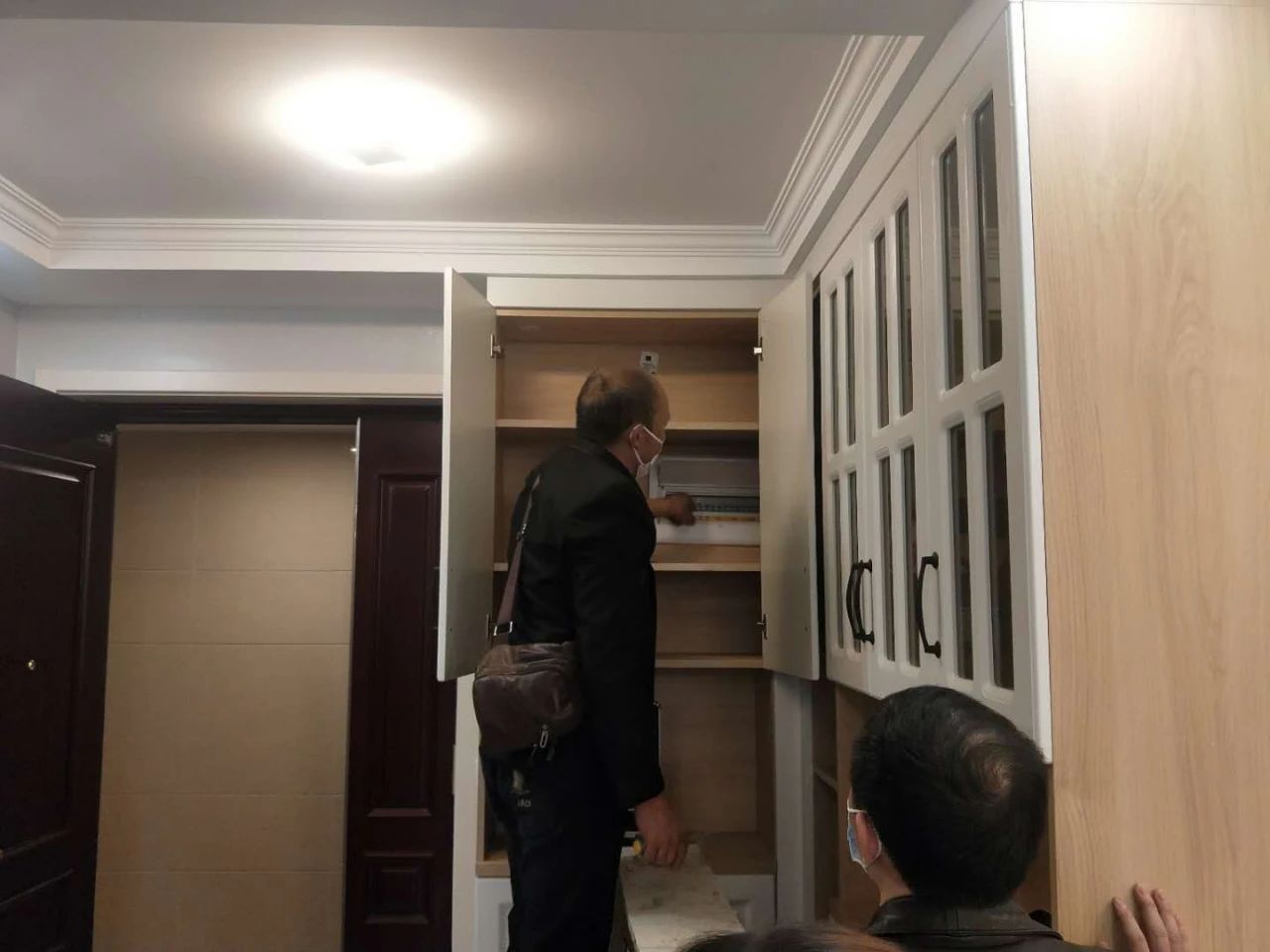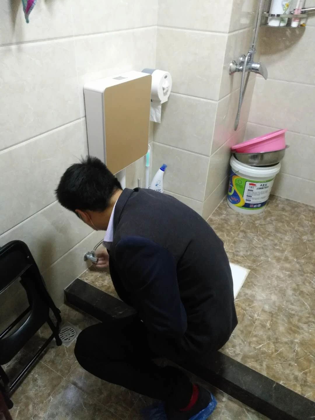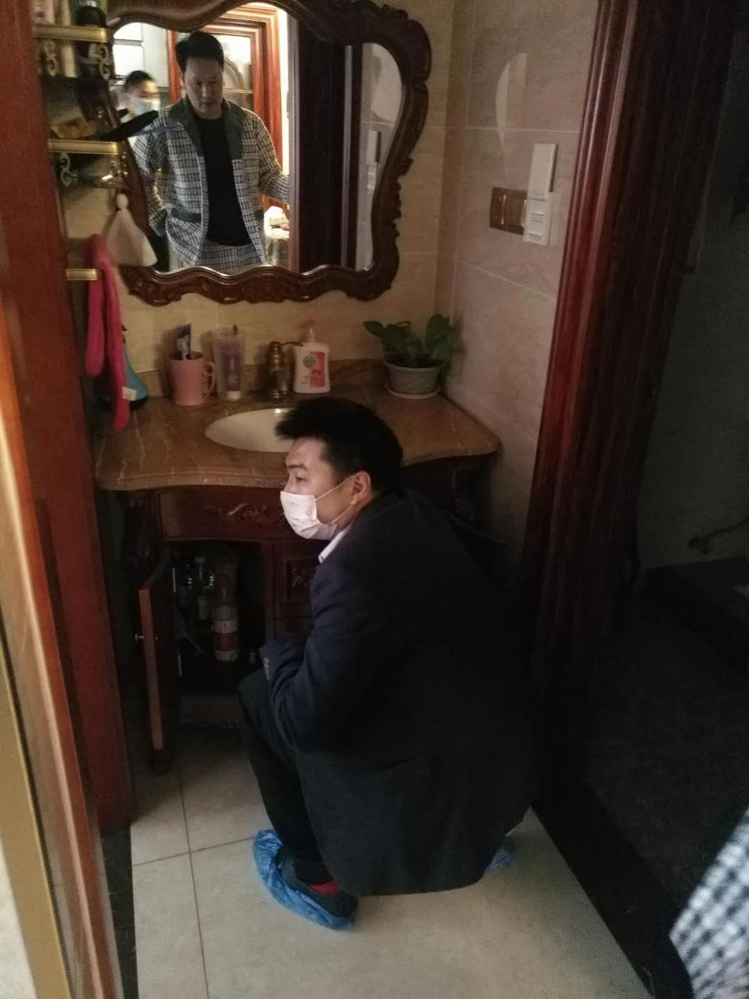 ▲工程部質檢在檢查排水管道,給業(yè)主講解相關問題