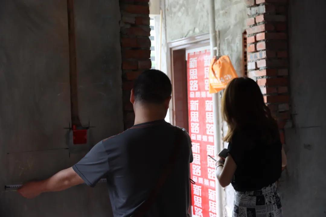 棕櫚泉悅江國際是我們前去的第一個(gè)工地。剛到現(xiàn)場(chǎng),設(shè)計(jì)師趙亞飛便開始勘查工地情況。因?yàn)楝F(xiàn)場(chǎng)還處在水電工藝階段,設(shè)計(jì)師趙亞飛的關(guān)注重點(diǎn)便是在管線走向是否符合自己的設(shè)計(jì)圖紙上。