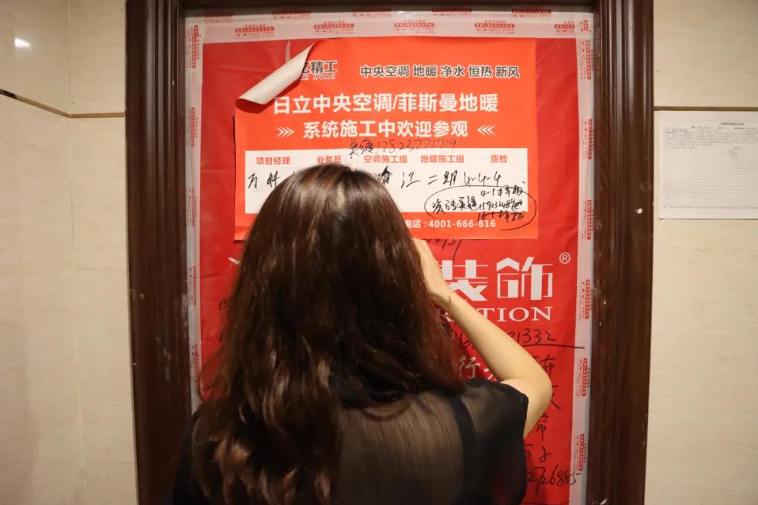 金域?qū)W府工地。這是一處正在進(jìn)行硬裝階段的工地,需要設(shè)計(jì)師注意的地方很多。我們到達(dá)現(xiàn)場(chǎng)后,設(shè)計(jì)師趙亞飛首先第一件事就是主動(dòng)在門上進(jìn)行簽到和在公司群里打卡。良好的管理制度才能有著高效率,能讓我們更好地為客戶服務(wù)。
