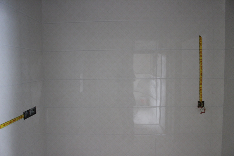張總正在仔細(xì)查看墻面貼磚工藝