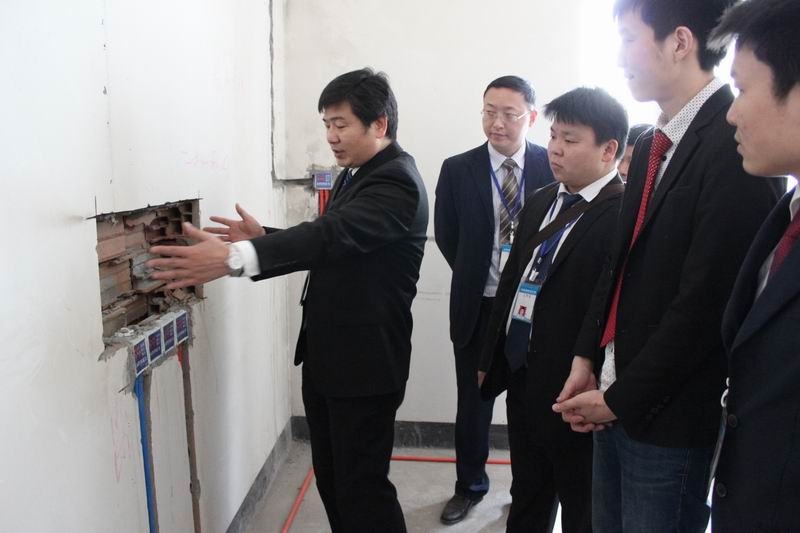 工程部文經(jīng)理在向大家介紹水電工藝細節(jié)