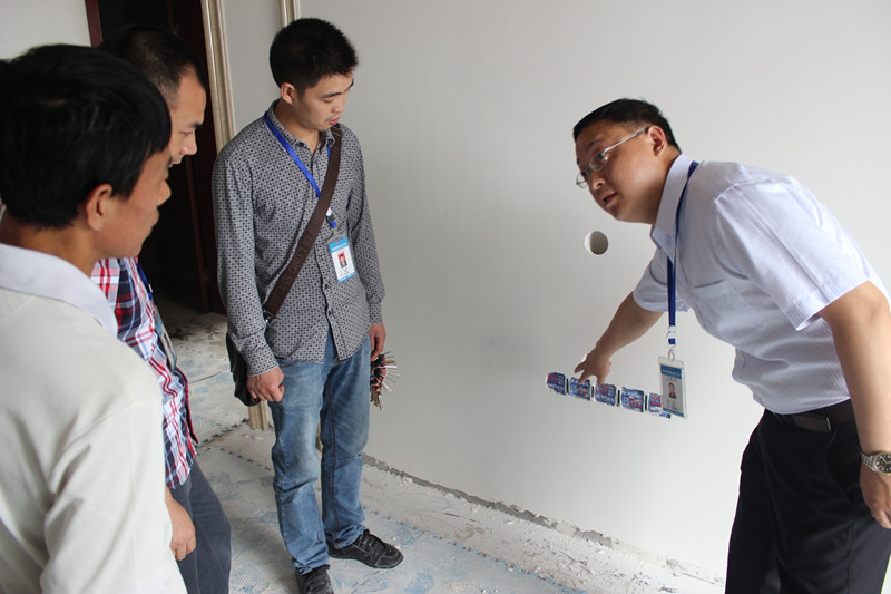 此次巡查嚴(yán)格遵循公司檢查制度和流程,檢查項(xiàng)目包括工程進(jìn)度、安全防護(hù)、工程形象、工地衛(wèi)生、成品保護(hù)、工藝標(biāo)準(zhǔn)等近百余項(xiàng)國家標(biāo)準(zhǔn)。大如是否私自變動(dòng)工程,是否按公司規(guī)定使用主材和輔材;細(xì)微如每一個(gè)線頭的安全保護(hù),每一塊瓷磚之間的縫隙寬窄,均按公司標(biāo)準(zhǔn)嚴(yán)格檢查。現(xiàn)場發(fā)現(xiàn),現(xiàn)場指導(dǎo),現(xiàn)場整改,將工程質(zhì)量問題控制在發(fā)生階段。巡查小組事無巨細(xì)的檢查、對施工質(zhì)量的嚴(yán)苛態(tài)度,讓在場的業(yè)主與施工工人都深刻體會(huì)到了新思路對于工程質(zhì)量近乎偏執(zhí)的高要求。文經(jīng)理在檢查的同時(shí),也現(xiàn)場對新進(jìn)的項(xiàng)目經(jīng)理進(jìn)行了指導(dǎo)和教學(xué),不斷強(qiáng)調(diào)公司工程施工上的一些標(biāo)準(zhǔn)和要點(diǎn),并把自己的工程管理經(jīng)驗(yàn)分享給他們。