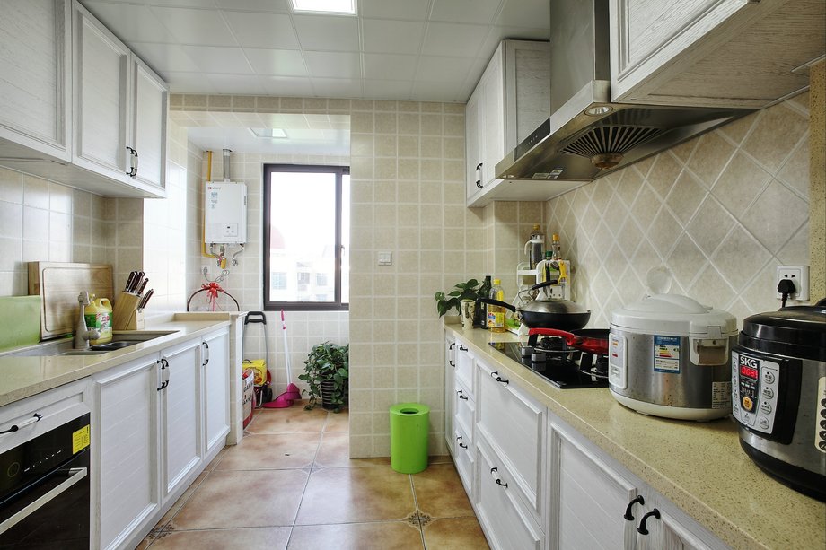 廚房的燈要明亮,這樣眼睛就能不費(fèi)力的看清楚要切的是蒜苗還是蔥;燈泡,不要裝黃燈,不然,蔬果肉類的顏色易失真。記得廚房是打仗的地方,不是搞氣氛的地方?,F(xiàn)在吊頂主燈有幾種做法,包括嵌燈,日光燈或流明吊頂。流明吊頂是利用亞克力板或白膜玻璃嵌入頂棚中,好處是可讓光源更均勻的灑下,但缺點(diǎn)是造價(jià)比較貴但廚房要亮,不是靠吊頂燈,而是要加強(qiáng)重點(diǎn)照明,例如在切菜的臺(tái)面上方以及燃?xì)庠钌戏?,皆可再加裝一盞燈。