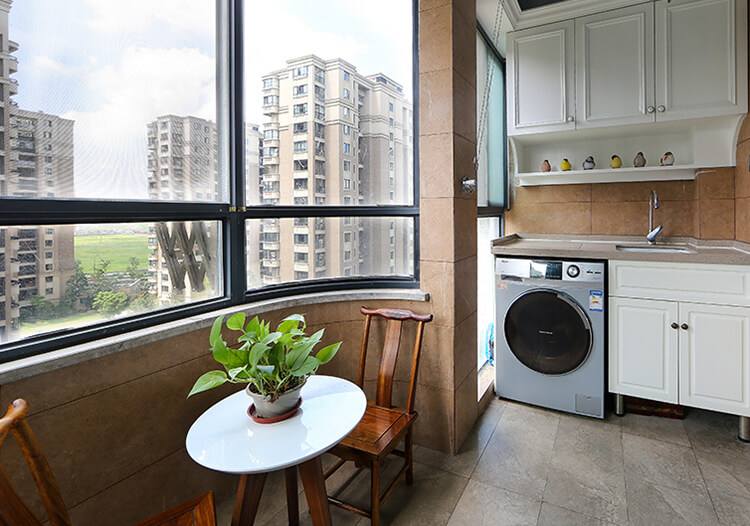 如果只是簡單的白墻,這樣的設(shè)計(jì)未免顯得很單調(diào)、枯燥。如上面的小戶型陽臺(tái)裝修效果圖所示,將木質(zhì)與磚墻結(jié)合,整體設(shè)計(jì)就變得豐富起來。陽臺(tái)空間中預(yù)留一個(gè)位置,可以用來放置洗衣機(jī),小巧簡單又實(shí)用。