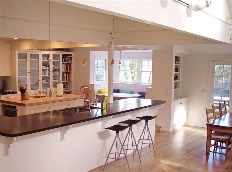 在室內(nèi)設(shè)置吧臺(tái),必須將吧臺(tái)看作是完整空間的一部分,而不單只是一件家具,好的設(shè)計(jì)能將吧臺(tái)融入空間。吧臺(tái)的位置并沒(méi)有特定的規(guī)則可循,設(shè)計(jì)師通常會(huì)建議利用一些畸零空間,如果將吧臺(tái)融入當(dāng)做是空間的主體時(shí),便要好好考慮動(dòng)線走向。良好的設(shè)計(jì)具有引導(dǎo)性,無(wú)形中使居住往來(lái)更加舒適。