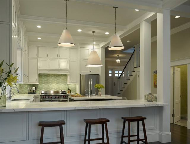 位置當(dāng)然也會(huì)影響電路和給排水設(shè)計(jì),尤其是離管道間或排水管較遠(yuǎn)的角落時(shí),排水就成了一大難題。排水管要有一定的傾斜角度。如果吧臺(tái)位置離室外近,可以將排水管接到戶外,以單獨(dú)的管線排水;如果須將管線接到管道間而傾斜度又不足,必須從天花板或者墻內(nèi)安管時(shí),施工就比較麻煩,費(fèi)用也會(huì)跟著提高。