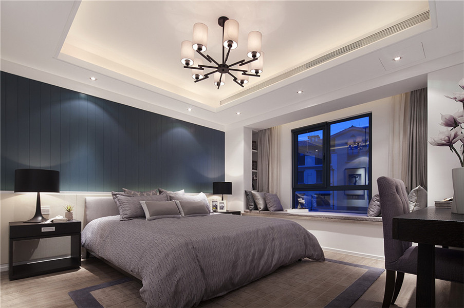 人的一生有近1/3的時間處于睡眠狀態(tài),擁有一個溫牌、舒適的主臥室是很多人追求的目標。主臥室一般是指家庭主人的夫妻臥室,其功能不僅限于睡眠,同時還包括儲截、更衣、休憩、學習等;此外,作為個人活動空間,主臥室的私密性要求較高。因此,設計時應充分考慮該空間的多功能要求,并避免受外界視線、活動的干擾。
