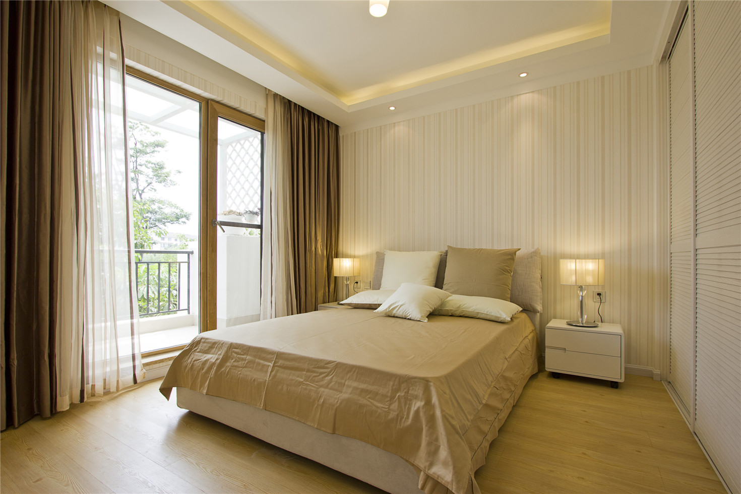 2,,墻壁約有1/3的面積被家具所遮擋,而人的視覺除床頭上部的空間外,主要集中于室內(nèi)的家具上。因此墻壁的裝飾宜簡單些,床頭上部的主體空間可設計一些有個性化的裝飾品,選材宜配合整體色調(diào),烘托臥室氣氛。